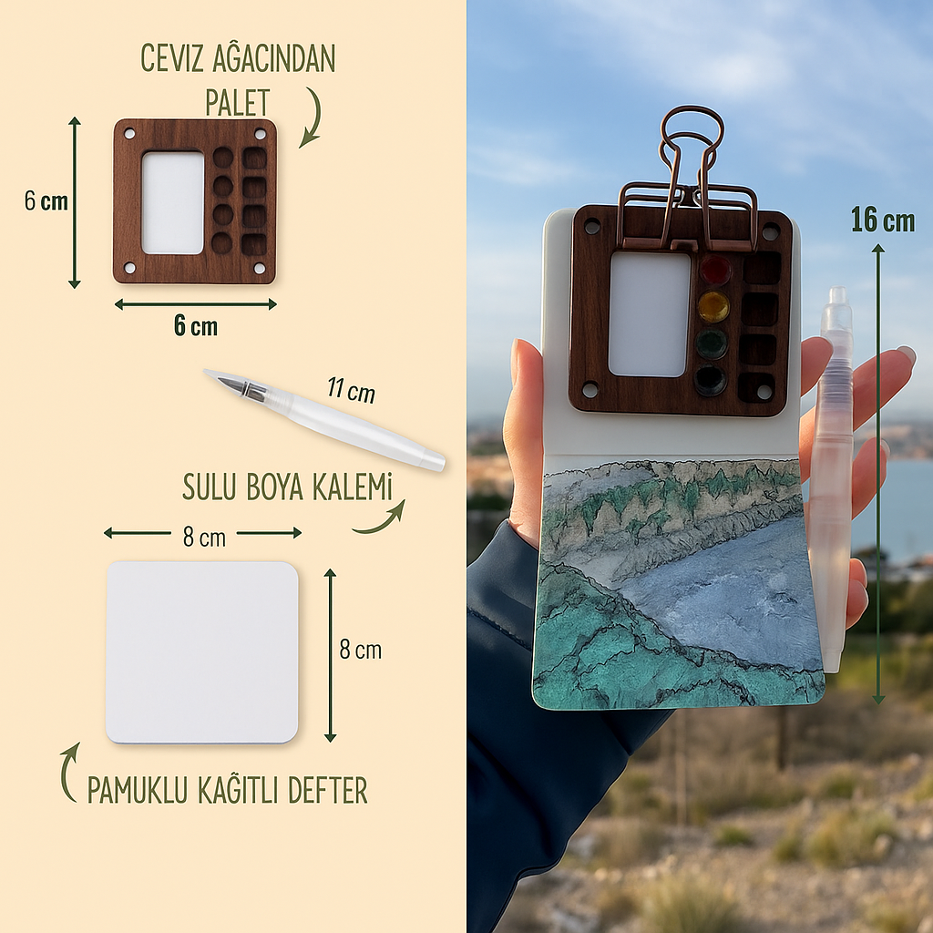 Bu cep boyutundaki suluboya seti ile yaratıcılığınız sizinle birlikte seyahat ediyor.